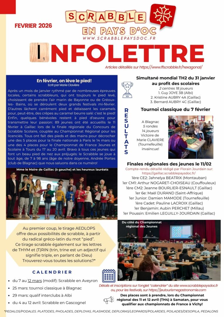 Bonne année 2025! Découvrez la nouvelle infolettre, qui sera envoyée le plus régulièrement possible dans les boîtes mail de chaque licencié! Pour la recevoir ou mettre à jour votre adresse mail, envoyez un mail à mariescrabblemidipy@gmail.com